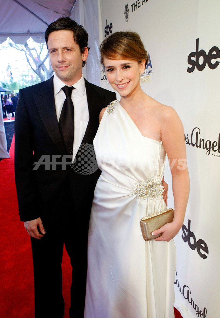 2008年2月24日、ウエストハリウッド(West Hollywood)のThe Abbeyで開催されたアカデミー賞観覧パーティー「The Envelope Please」に登場した、女優のジェニファー・ラヴ・ヒューイット(Jennifer Love Hewitt、右)と夫で俳優のロス・マッコール(Ross McCall)。(c)AFP/Getty Images/Michael Buckner