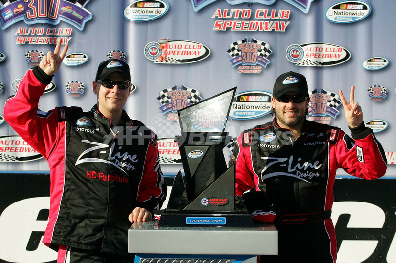 【2月26日 AFP】NASCAR・ネーションワイドシリーズ(2008 NASCAR Nationwide Series)第2戦、ステイター・ブラザーズ300(Stater Brothers 300)、決勝。ジョー・ギブス・レーシング/トヨタ(Joe Gibbs Racing Toyota)のトニー・スチュワート(Tony Stewart)は、シーズン初勝利を飾り195ポイント(150周)を獲得した。(c)AFP/Getty Images