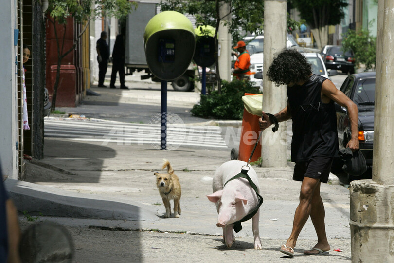 ニュース ライフ ぽかぽか陽気のブラジルでブタのお散歩 2008年2月27日 10:22 発信地:バラフンダ/ブラジル [ 中南米 ブラジル ] このニュースをシェア ‹ › ❮ 6/6 ❯ 2008年2月26日、ブラジル・サンパウロ(Sao Paulo)近郊のバラフンダ(Barra Funda)で散歩する生後8か月のブタ「ガブリエル(Gabriel)」。((c)AFP/Mauricio LIMA 画像作成中 ! 【2月27日 AFP】ブラジル・サンパウロ(Sao Paulo)近郊のバラフンダ(Barra Funda)で26日、ポカポカ陽気の中を気持ちよさそうに散歩する生後8か月のブタ、ガブリエル(Gabriel)くんの姿が見られた。(c)AFP ライフ 一覧へ> メディア・報道関係・法人の方向け 写真・動画 購入のお問合せ>