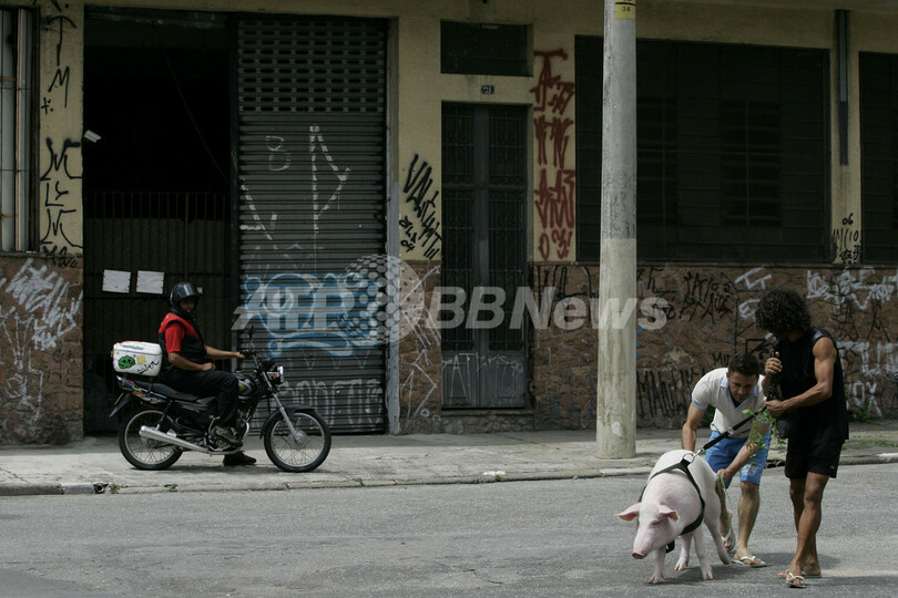 ニュース ライフ ぽかぽか陽気のブラジルでブタのお散歩 2008年2月27日 10:22 発信地:バラフンダ/ブラジル [ 中南米 ブラジル ] このニュースをシェア ‹ › ❮ 4/6 ❯ 2008年2月26日、ブラジル・サンパウロ(Sao Paulo)近郊のバラフンダ(Barra Funda)で散歩する生後8か月のブタ「ガブリエル(Gabriel)」。((c)AFP/Mauricio LIMA 画像作成中 ! 【2月27日 AFP】ブラジル・サンパウロ(Sao Paulo)近郊のバラフンダ(Barra Funda)で26日、ポカポカ陽気の中を気持ちよさそうに散歩する生後8か月のブタ、ガブリエル(Gabriel)くんの姿が見られた。(c)AFP ライフ 一覧へ> メディア・報道関係・法人の方向け 写真・動画 購入のお問合せ>