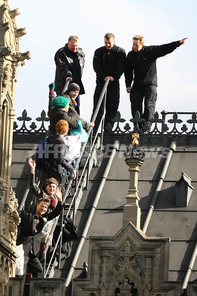 ニュース 環境・科学 ロンドンの国会議事堂で抗議活動 2008年2月28日 0:01 発信地:ロンドン/英国 [ ヨーロッパ 英国 ] このニュースをシェア ‹ › ❮ 2/7 ❯ 2008年2月27日、英ヒースロー(Heathrow)空港の拡張に反対し、ロンドンの国会議事堂によじ登った反対デモの参加者に話しかける警備員(上)。(c)AFP/BEN STANSALL 画像作成中 ! 【2月27日 AFP】英国のロンドン(London)で27日、ヒースロー空港(Heathrow airport)の拡張に反対するグループが国会議事堂の屋根に上り、垂れ幕を下げて抗議活動を行った。 25日にヒースロー空港で同様の抗議活動があったばかりだった。(c)AFP 環境・科学 一覧へ> メディア・報道関係・法人の方向け 写真・動画 購入のお問合せ>