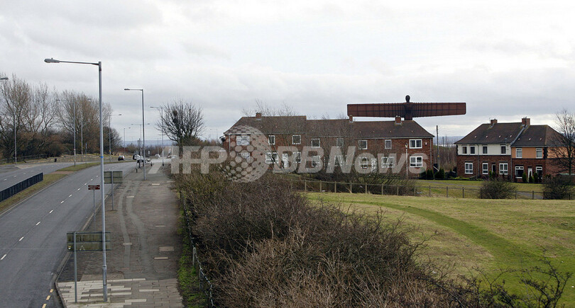 2008年2月23日、イングランド北東部ゲーツヘッド(Gateshead)近郊の丘の上にある英国人彫刻家アントニー・ゴームリー(Antony Gormley)による鋼鉄製の彫刻「エンジェル・オブ・ザ・ノース(Angel of the North、北の天使の意)」。(c)AFP/ANDREW YATES
