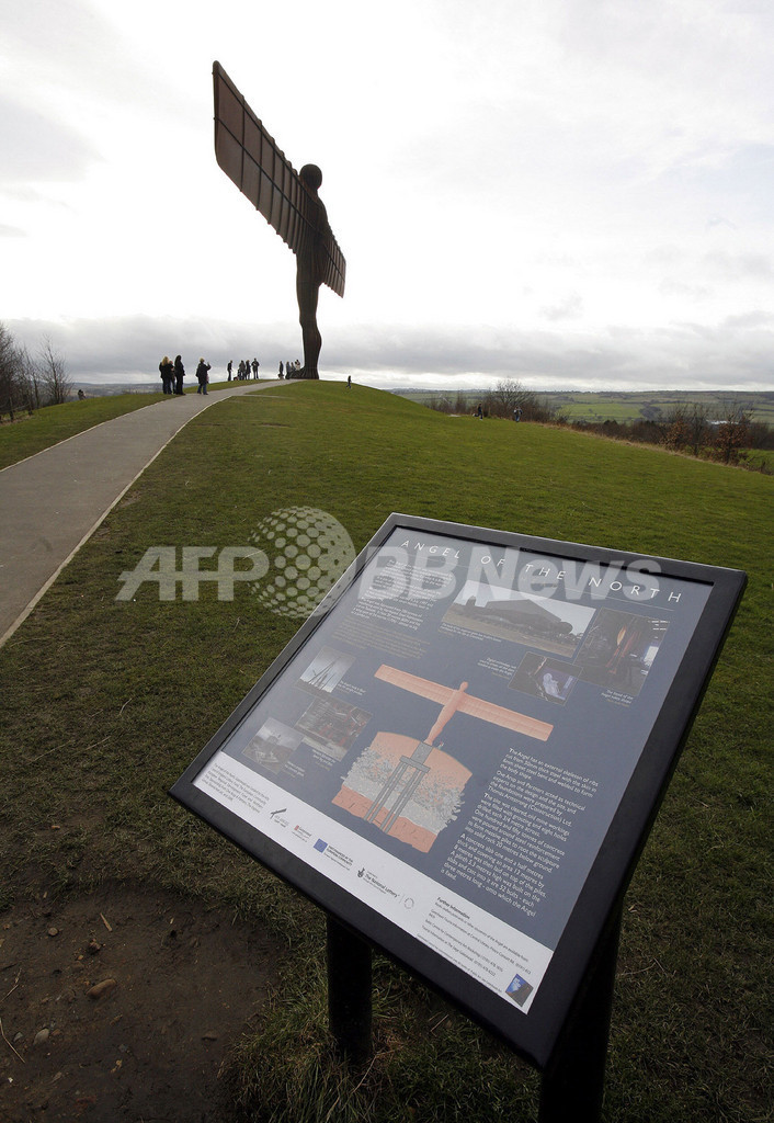 2008年2月23日、イングランド北東部ゲーツヘッド(Gateshead)近郊の丘の上にある英国人彫刻家アントニー・ゴームリー(Antony Gormley)による鋼鉄製の彫刻「エンジェル・オブ・ザ・ノース(Angel of the North、北の天使の意)」。(c)AFP/ANDREW YATES