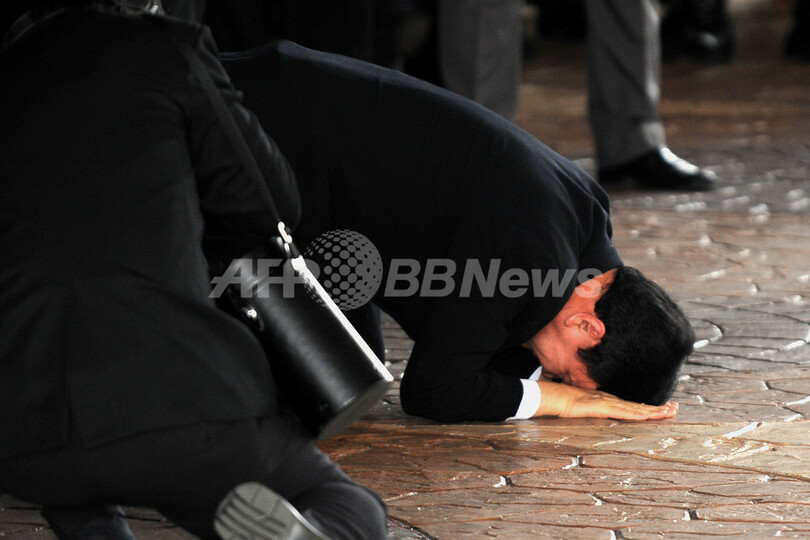 同日朝、タイ航空(Thai Airways)603便で香港を出発した元首相は、午前9時38分にバンコク(Bangkok)国際空港に到着。一万人以上の熱狂的な支持者に迎えられながら、ひざまづいて母国の大地に口づけし、帰国を祝った。