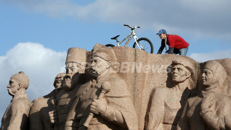 ニュース ライフ こぼれ話 ソビエト時代の石造モニュメント、若者が上に登る 2008年3月1日 15:39 発信地:キエフ/ウクライナ [ ロシア・CIS ウクライナ ] このニュースをシェア ‹ › ❮ 2/4 ❯ 2008年2月29日、ウクライナの首都・キエフ(%%Kiev%%)でソビエト時代の石造モニュメントに登る若者。(c)AFP/SERGEI SUPINSKY 画像作成中 ! 【3月1日 AFP】ウクライナの首都・キエフ(Kiev)で29日、ソビエト時代に製作されたロシアとウクライナの統合を祝うモニュメントに若者が自転車を担いで登った。(c)AFP ライフ 一覧へ> メディア・報道関係・法人の方向け 写真・動画 購入のお問合せ>