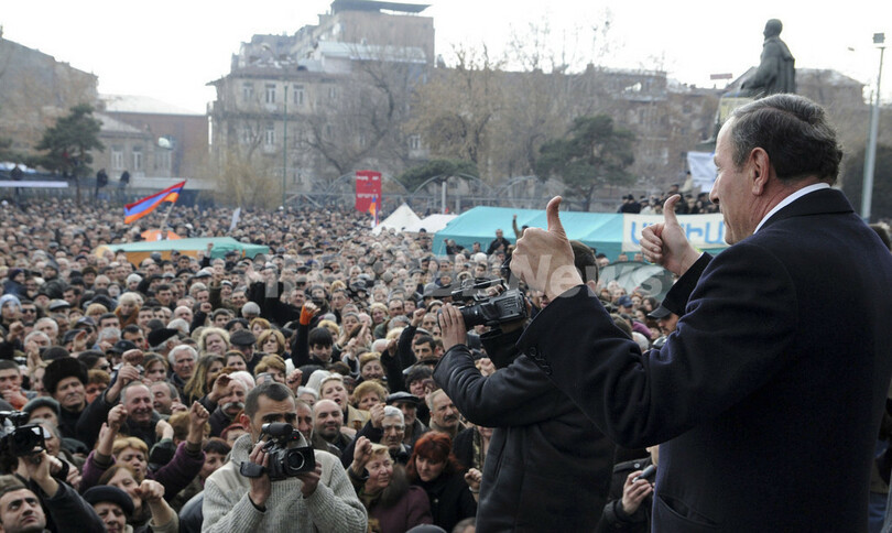 首都エレバン(Yerevan)の中央広場で1日に起きた警察部隊と約8000人の野党支持者らの衝突では、野党支持者らが火炎瓶や石を投げる中、警察部隊が催涙ガスや自動小銃を発砲するなどして応戦した。