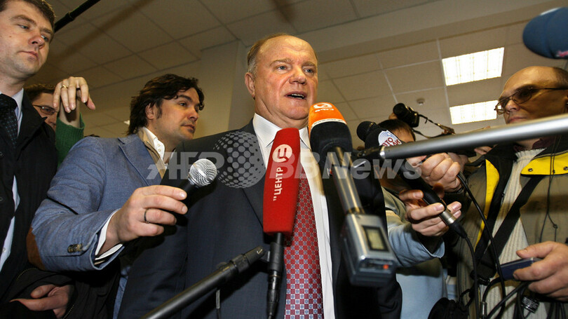 タス通信(ITAR-TASS)によると、ジュガーノフ氏は投票締め切り後の記者会見で、選挙に「不正があった証拠がある」として裁判所に提訴する意向を示している。(c)AFP/Nick Coleman