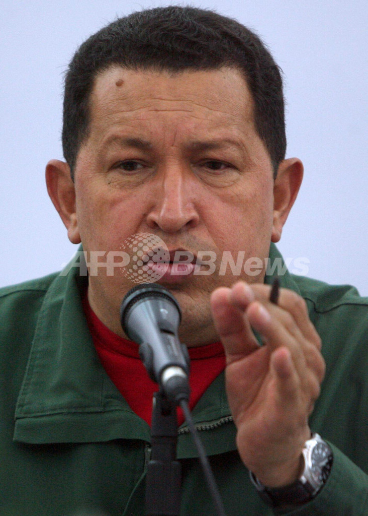 またチャベス大統領は、外相に在ボゴタ大使館を閉鎖し、職員を帰国させるよう指示した。駐コロンビア・ベネズエラ大使は前年11月に、外交関係をめぐりチャベス大統領とコロンビアのアルバロ・ウリベ(Alvaro Uribe)大統領が対立した際、既に召還されている。(c)AFP/Jean-Luc Porte