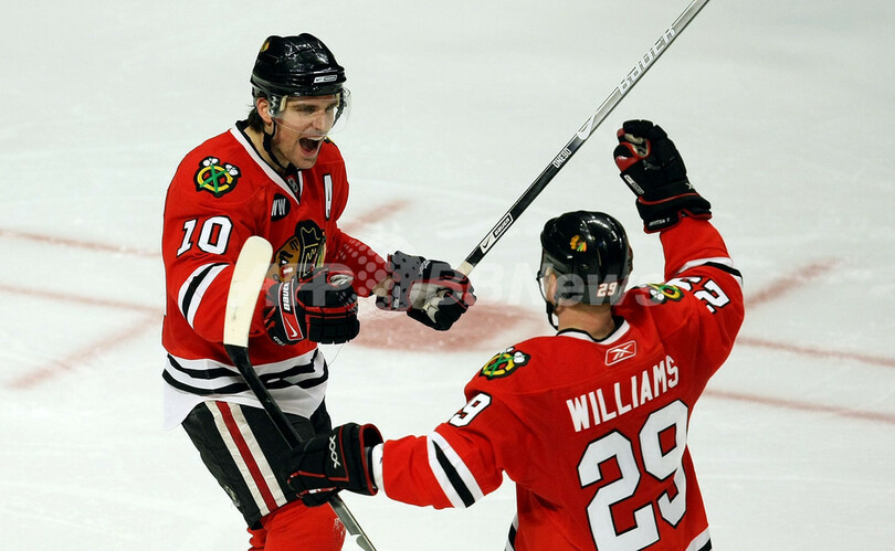 スポーツ ウインタースポーツ ブラックホークス カナックスに勝利 2008年3月3日 9:58 発信地:シカゴ/米国 [ 北米 米国 ] このニュースをシェア ‹ › ❮ 2/8 ❯ 第3ピリオドにチームの3得点目を決めジェイソン・ウィリアムズ(%%Jason Williams%%、右)から祝福を受けるブラックホークスのパトリック・シャープ(%%Patrick Sharp%%)。(c)AFP/Getty Images/Jonathan Daniel 画像作成中 ! 【3月3日 AFP】07-08NHL、シカゴ・ブラックホークス(Chicago Blackhawks)vsバンクーバー・カナックス(Vancouver Canucks)。試合は4-1でブラックホークスが勝利を収めた。(c)AFP/Getty Images ウインタースポーツ 一覧へ> メディア・報道関係・法人の方向け 写真・動画 購入のお問合せ>