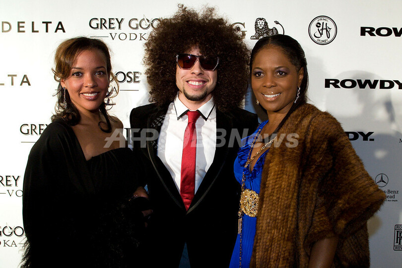 2008年3月1日、アトランタ(Atlanta)のCobb Energy Performing Arts Centreで開催された著名音楽プロデューサーのダラス・オースティン(Dallas Austin)が主催する第3回「Don’t Stop The Music」に登場したR&Bアーティストのケヴィン・マイケル(Kevin Michael、中央)とBMI副会長/作家のCatherine Brewton(右)、Shelly Hardrutt-Hill。(c)AFP/Getty Images/Annette Brown