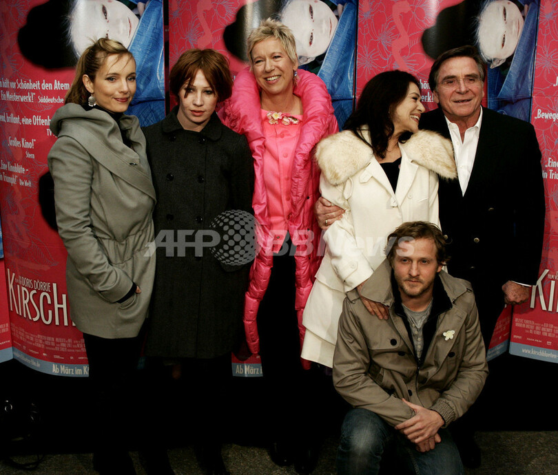 2008年3月6日、ミュンヘン(Munich)で開催された、映画『Kirschbluten - Hanami』のプレミア上映会に登場した(左から)女優のナディヤ・ウール(Nadja Uhl)、Birgit Minichmayr、Doris Doerrie監督、女優のハンネローレ・エルスナー(Hannelore Elsner)、俳優のMaximilian Bruecknerとエルマー・ウェッパー(Elmar Wepper)。(c)AFP/DDP/PHILIPP GUELLAND