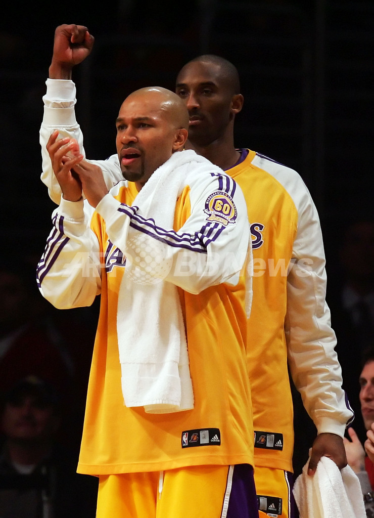 スポーツ バスケットボール レイカーズ クリッパーズに快勝し3連勝 2008年3月8日 18:53 発信地:ロサンゼルス/米国 [ 北米 米国 ] このニュースをシェア ‹ › ❮ 8/11 ❯ ベンチでチームの得点を喜ぶレイカーズのデレク・フィッシャー(%%Derek Fisher%%、手前)とコービー・ブライアント(%%Kobe Bryant%%)。(c)AFP/Getty Images/Jeff Gross 画像作成中 ! 【3月8日 AFP】07-08NBA、ロサンゼルス・レイカーズ(Los Angeles Lakers)vsロサンゼルス・クリッパーズ(Los Angeles Clippers)。試合はレイカーズが119-82で快勝し、3連勝をマークした。(c)AFP バスケットボール 一覧へ> メディア・報道関係・法人の方向け 写真・動画 購入のお問合せ>