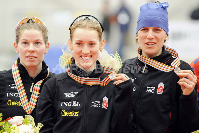 【3月8日 AFP】(写真追加)2008世界距離別スピードスケート選手権大会・長野大会(ISU World Single Distances Speed Skating Championships in Nagano 2008)、女子・チームパシュート。オランダのイレイン・ブスト(Ireen Wust)/ポリーン・ファンデートコム(Paulien Van Deutekom)/レナテ・フルーネウォルト(Renate Groenewold)組は、 3分02秒19を記録し優勝を飾った。(c)AFP