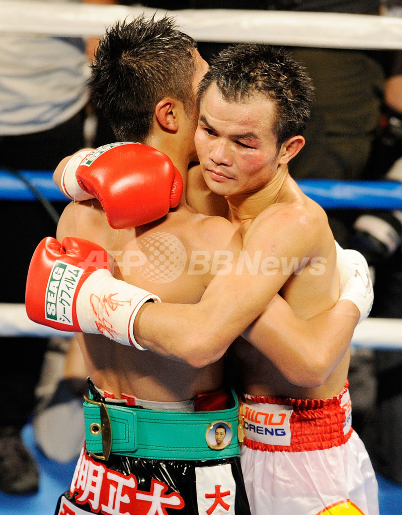 スポーツ スポーツ その他 内藤 ポンサクレックと引き分け2度目の防衛成功 2008年3月9日 8:00 発信地:東京 [ アジア・オセアニア 東京 ] このニュースをシェア ‹ › ❮ 13/13 ❯ 試合後にポンサクレック・ウォンジョンカム(右)と健闘を称え合う内藤大助。(c)AFP/TORU YAMANAKA 画像作成中 ! 【3月8日 AFP】(写真追加、一部訂正)ボクシング、WBCフライ級タイトルマッチ12回戦。王者の内藤大助(Daisuke Naito、日本)は、同級1位のポンサクレック・ウォンジョンカム(Pongsaklek Wonjongkam、タイ)と対戦。試合は1-1(114-115、115-113、114-114)の引き分けに終わり、内藤が同王座の2度目の防衛に成功した。(c)AFP スポーツ その他 一覧へ> メディア・報道関係・法人の方向け 写真・動画 購入のお問合せ>