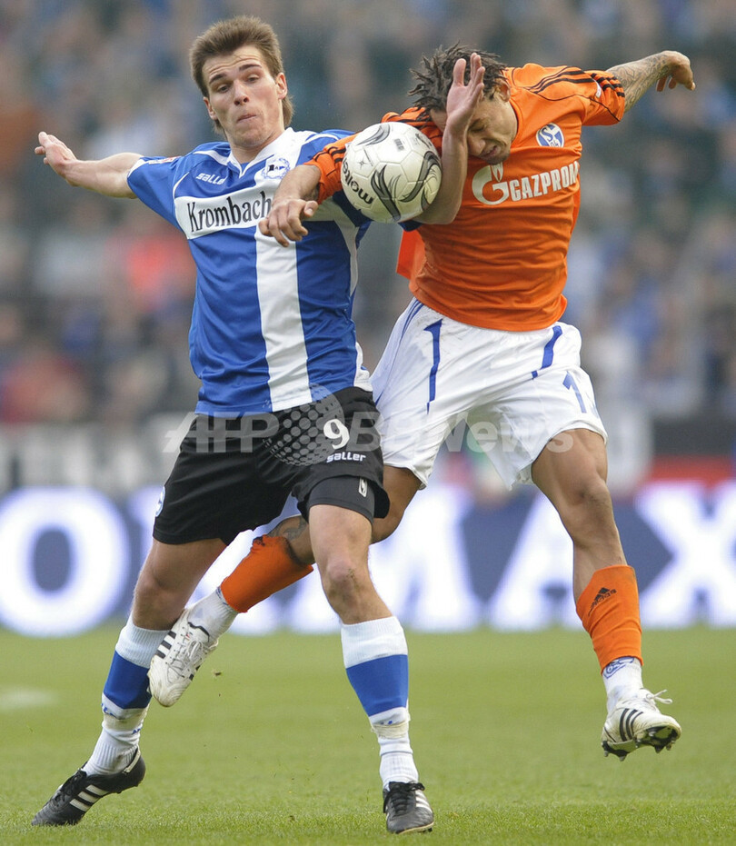 スポーツ サッカー シャルケ ビーレフェルト降し連敗止める 2008年3月9日 8:30 発信地:ビーレフェルト/ドイツ [ ヨーロッパ ドイツ ] このニュースをシェア ‹ › ❮ 2/6 ❯ ビーレフェルトのクリスティアン・アイグラー(%%Christian Eigler%%、左)とボールを競るシャルケのジャーマイン・ジョーンズ(%%Jermaine Jones%%)。(c)AFP/DDP/MICHAEL GOTTSCHALK 画像作成中 ! 【3月9日 AFP】サッカー、07-08ドイツ・ブンデスリーガ1部・第23節、アルミニア・ビーレフェルト(Arminia Bielefeld)vsシャルケ04(Schalke 04)。試合はアウェーのシャルケが2-0で勝利を収め、連敗を3で止めた。(c)AFP/MICHAEL GOTTSCHALK サッカー 一覧へ> メディア・報道関係・法人の方向け 写真・動画 購入のお問合せ>