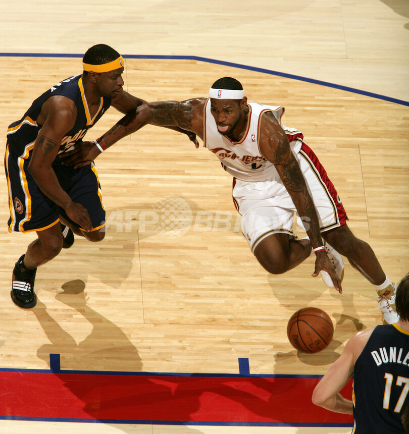 【3月9日 AFP】07-08NBA、クリーブランド・キャバリアーズ(Cleveland Cavaliers)vsインディアナ・ペイサーズ(Indiana Pacers)。試合はキャバリアーズが103-95でペイサーズを降し、キャバリアーズはシーズン36勝目を挙げた。(c)AFP/Getty Images