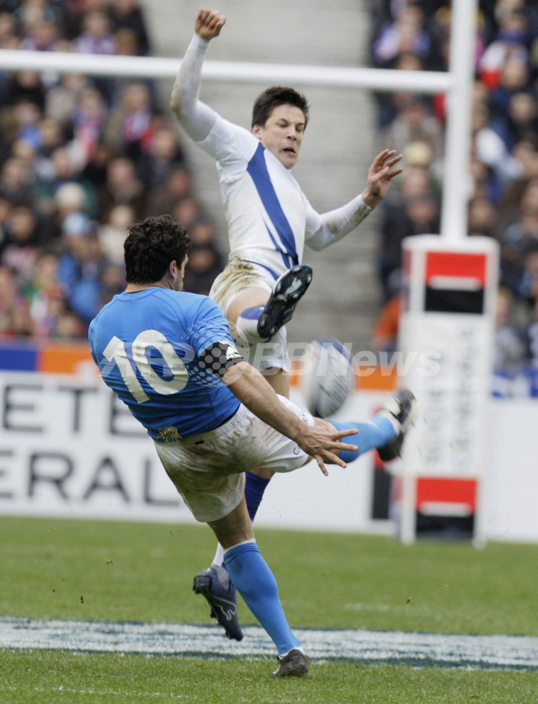 スポーツ ラグビー フランス イタリアを降し大会3勝目 2008年3月10日 7:41 発信地:サン・ドニ/フランス [ ヨーロッパ フランス ] このニュースをシェア ‹ › ❮ 3/15 ❯ イタリアのアンドレア・マージィ(%%Andrea Masi%%、左)のキックをブロックしようとするフランスの%%Francois Trinh-Duc%%。(c)AFP/BERTRAND GUAY 画像作成中 ! 【3月10日 AFP】ラグビー、6ネイションズ(RBS Six Nations 2008)第4節、フランスvsイタリア。試合はフランスが25-13でイタリアを降し、フランスは大会3勝目を挙げた。またフランスは、イタリアとの間で獲得を争うガリバルディ・トロフィー(Garibaldi Trophy)を獲得した。(c)AFP ラグビー 一覧へ> メディア・報道関係・法人の方向け 写真・動画 購入のお問合せ>
