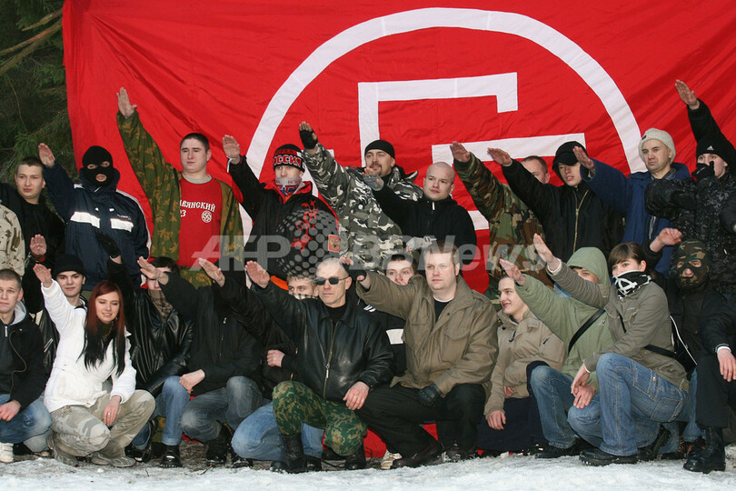 ニュース ライフ ロシアのネオナチ組織、冬の森で「分隊教練」 2008年3月14日 13:59 発信地:モスクワ/ロシア [ ロシア・CIS ロシア ] このニュースをシェア ‹ › ❮ 3/3 ❯ 2008年3月10日、ロシアの首都モスクワ(Moscow)郊外の森林で行った「分隊教練」で、ナチス(Nazi)式の敬礼を行うロシアの極右ネオナチ組織「スラブ・ユニオン(Slav Union)」のメンバー。(c)AFP/VASSILY MAXIMOV 画像作成中 ! 【3月14日 AFP】ロシアの首都モスクワ(Moscow)郊外の森林で10日、極右ネオナチ組織「スラブ・ユニオン(Slav Union)」が「分隊教練」を行い、雪の中、上半身裸でレスリングなどを行った。(c)AFP ライフ 一覧へ> メディア・報道関係・法人の方向け 写真・動画 購入のお問合せ>