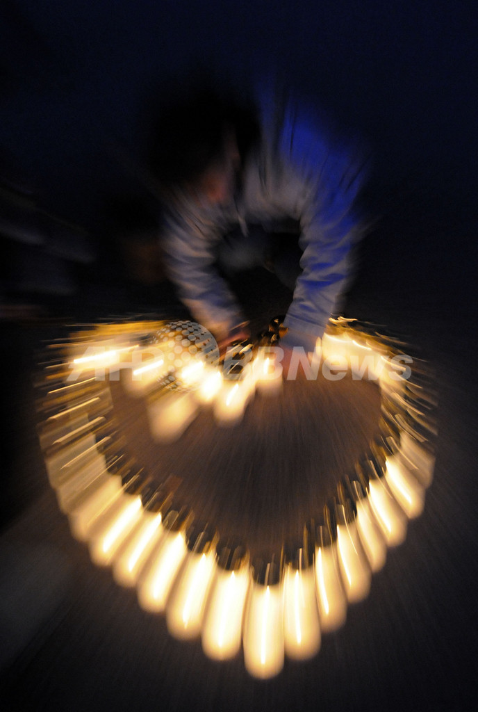 犠牲者1人ひとりのために1本ずつのろうそくがともされ、約8万本のろうそくが広場を埋めた。自身もオーストリア人だったアドルフ・ヒトラー(Adolf Hitler)は70年前の1938年3月12日、民衆約25万人から支持を受け、オーストリアの併合を宣言した。(c)AFP