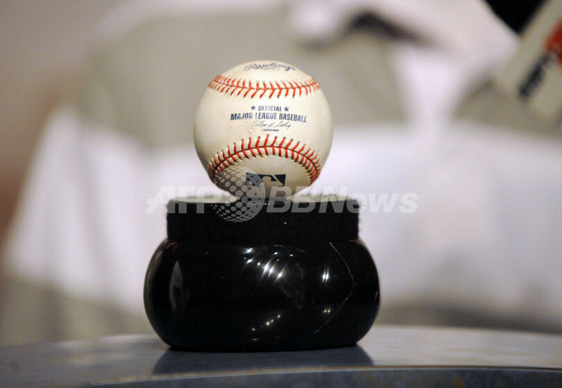 【3月14日 AFP】2007年シーズンの9月5日に行われたコロラド・ロッキーズ(Colorado Rockies)vsサンフランシスコ・ジャイアンツ(San Francisco Giants)戦で、当時サンフランシスコ・ジャイアンツに所属していたバリー・ボンズ(Barry Bonds)外野手が放ったメジャー通算本塁打記録となる762号本塁打のボールを保持しているJameson Suttonさんが13日、デンバー(Denver)にあるスポーツバーESPN Zoneで記念ボールを31日から4月12日までネットオークションに出品することを発表した。(c)AFP/Getty Images