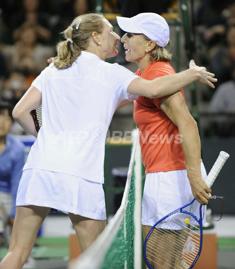 スポーツ テニス シュテフィ・グラフ氏がエキシビションマッチでマルチナ・ナブラチロワ氏に勝利 2008年3月15日 19:12 発信地:東京 [ アジア・オセアニア 東京 ] このニュースをシェア ‹ › ❮ 11/11 ❯ 試合を終えて健闘を称え合うマルチナ・ナブラチロワ氏とシュテフィ・グラフ氏(左)。(c)AFP/Toru YAMANAKA 画像作成中 ! 【3月15日 AFP】伝説のテニス選手、シュテフィ・グラフ(Steffi Graf)氏(ドイツ)とマルチナ・ナブラチロワ(Martina Navratilova)氏(チェコ)によるエキシビションマッチが15日に都内で行なわれ、シュテフィ・グラフ氏が8ゲーム先取制の試合を8(10)-7(5)で制した。2人が対戦するのは1994年以来初となる。(c)AFP テニス 一覧へ> メディア・報道関係・法人の方向け 写真・動画 購入のお問合せ>