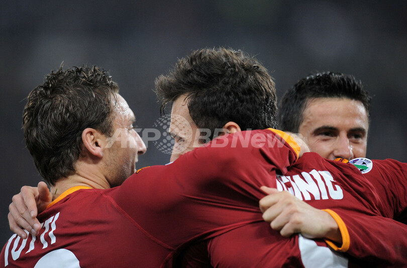 スポーツ サッカー ローマ ミランに勝利し3連勝 2008年3月16日 9:28 発信地:ローマ/イタリア [ ヨーロッパ イタリア ] このニュースをシェア ‹ › ❮ 8/30 ❯ 決勝点となるゴールを決めて祝福に駆け寄ったチームメイトのフランチェスコ・トッティ(%%Francesco Totti%%)とクリスティアン・パヌッチ(%%Christian Panucci%%)と喜びを分かち合うローマのミルコ・ブチニッチ(%%Mirko Vucinic%%)。(c)AFP/FILIPPO MONTEFORTE 画像作成中 ! 【3月16日 AFP】サッカー、07-08イタリア・セリエA・第28節、ASローマ(AS Roma)vsACミラン(AC Milan)。試合はローマが2-1でミランから勝利を収め、連勝を3に伸ばした。(c)AFP サッカー 一覧へ> メディア・報道関係・法人の方向け 写真・動画 購入のお問合せ>