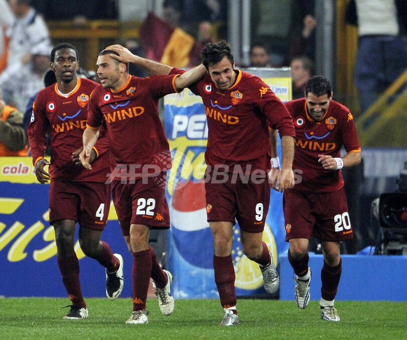 スポーツ サッカー ローマ ミランに勝利し3連勝 2008年3月16日 9:28 発信地:ローマ/イタリア [ ヨーロッパ イタリア ] このニュースをシェア ‹ › ❮ 2/30 ❯ 決勝点となるゴールを決めてチームメイトのマックス・トネット(%%Max Tonetto%%)と喜びを分かち合うローマのミルコ・ブチニッチ(%%Mirko Vucinic%%)。(c)AFP/ANDREAS SOLARO 画像作成中 ! 【3月16日 AFP】サッカー、07-08イタリア・セリエA・第28節、ASローマ(AS Roma)vsACミラン(AC Milan)。試合はローマが2-1でミランから勝利を収め、連勝を3に伸ばした。(c)AFP サッカー 一覧へ> メディア・報道関係・法人の方向け 写真・動画 購入のお問合せ>