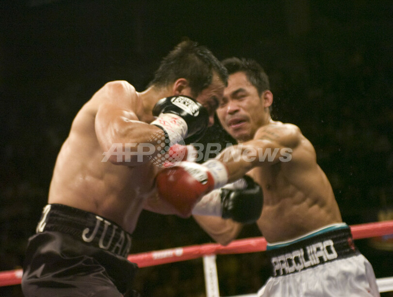 スポーツ スポーツ その他 マニー・パッキャオ マヌエル・マルケスを降しWBCスーパーフェザー新王者に 2008年3月16日 19:14 発信地:ラスベガス/米国 [ 北米 米国 ] このニュースをシェア ‹ › ❮ 4/13 ❯ 互いに打ち合うファン・マヌエル・マルケスとマニー・パッキャオ(右)。(c)AFP/Chris COZZONE 画像作成中 ! 【3月16日 AFP】ボクシング、WBCスーパーフェザー級タイトルマッチ。挑戦者マニー・パッキャオ(Manny Pacquiao、フィリピン)は、同階級王者のファン・マヌエル・マルケス(Juan Manuel Marquez)と対戦。パッキャオは12ラウンド判定の末、2-1(115-112、112-115、114-113)でファン・マヌエル・マルケスを降し、同階級新王者に輝いた。(c)AFP スポーツ その他 一覧へ> メディア・報道関係・法人の方向け 写真・動画 購入のお問合せ>
