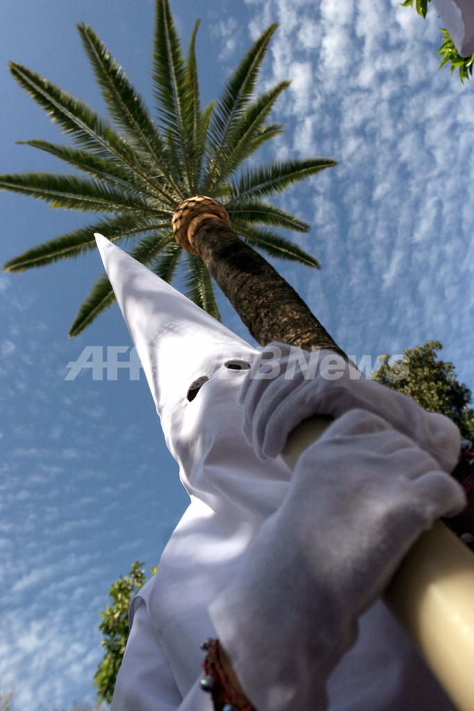 一方、スペインのセビリア(Seville)では、聖週間の初日を祝う行進が行われた。(c)AFP