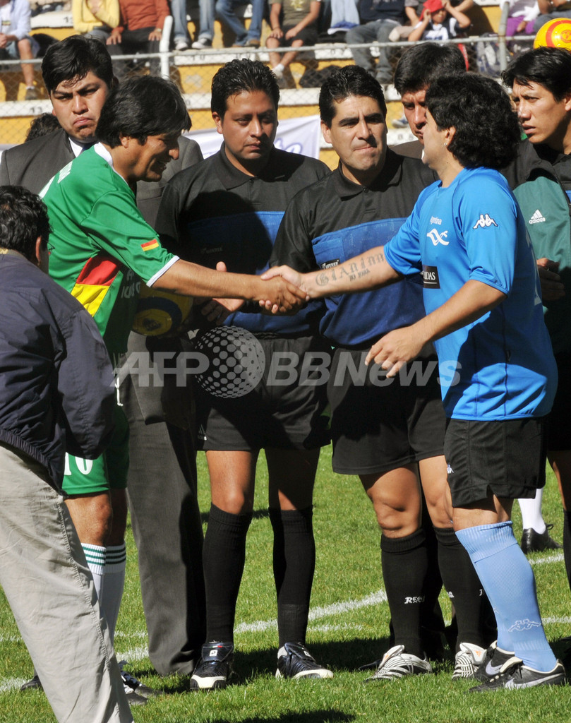 スポーツ サッカー マラドーナ氏 ボリビアでチャリティーマッチに出場 2008年3月18日 11:18 発信地:ラパス/ボリビア [ 中南米 ボリビア ] このニュースをシェア ‹ › ❮ 9/9 ❯ エボ・モラレス(%%Evo Morales%%)大統領と握手を交わすディエゴ・マラドーナ氏(右)。(c)AFP/AIZAR RALDES 画像作成中 ! 【3月18日 AFP】元サッカーアルゼンチン代表のディエゴ・マラドーナ(Diego Maradona)氏は現地17日、ボリビアで起きた洪水の被害者のためにラパス(La Paz)のエルナンド・シレス・スタジアム(Hernando Siles stadium)で行われたチャリティーマッチに出場した。(c)AFP サッカー 一覧へ> メディア・報道関係・法人の方向け 写真・動画 購入のお問合せ>
