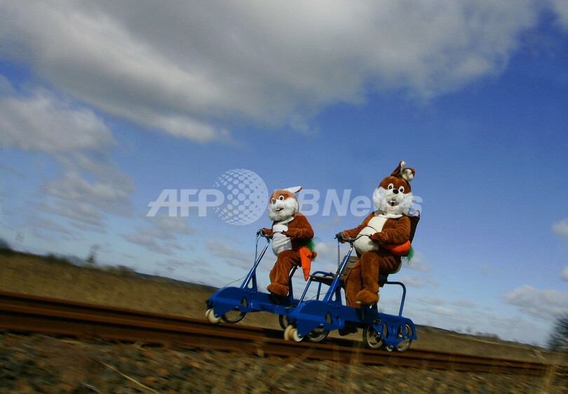 ニュース ライフ こぼれ話 もうすぐ復活祭、イースターバニーが活動開始 2008年3月19日 8:34 発信地:Mellensee/ドイツ [ ヨーロッパ ドイツ ] このニュースをシェア ‹ › ❮ 4/4 ❯ 2008年3月17日、ドイツ東部の都市Mellenseeで、イースター休暇に向けた活動企画のプロモーション活動の一環で、イースターバニーに扮(ふん)してイースターエッグを運ぶ2人。(c)AFP/DDP/MICHAEL URBAN 画像作成中 ! 【3月19日 AFP】キリストの復活を祝うイースター(復活祭)を間近に控えたドイツ東部の都市Mellenseeで17日、イースター休暇に向けた企画のプロモーション活動が行われた。(c)AFP ライフ 一覧へ> メディア・報道関係・法人の方向け 写真・動画 購入のお問合せ>