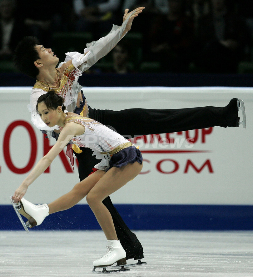 【3月19日 AFP】08世界フィギュアスケート選手権(ISU World Figure Skating Championships 2008)、ペア・ショートプログラム。中国の張丹(Zhang Dan、ツァン・ダン)/張昊(Zhang Hao、ツァン・ハオ)組は、74.36点を記録して首位に立った。