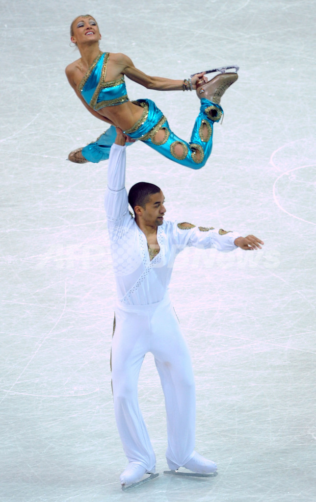 【3月19日 AFP】08世界フィギュアスケート選手権(ISU World Figure Skating Championships 2008)、ペア・ショートプログラム。中国の張丹(Zhang Dan、ツァン・ダン)/張昊(Zhang Hao、ツァン・ハオ)組は、74.36点を記録して首位に立った。