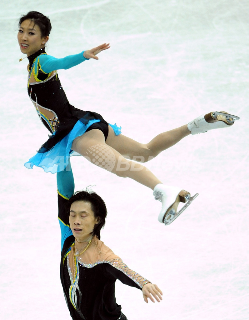 【3月19日 AFP】08世界フィギュアスケート選手権(ISU World Figure Skating Championships 2008)、ペア・ショートプログラム。中国の張丹(Zhang Dan、ツァン・ダン)/張昊(Zhang Hao、ツァン・ハオ)組は、74.36点を記録して首位に立った。