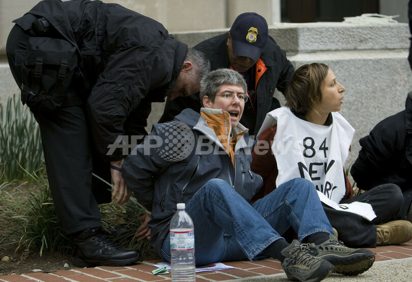 ブッシュ大統領の演説中、会場から数ブロック先にはイラク戦争に抗議する多数の人々が集まり、同戦争の終結を求めた。イラク戦争では、米軍兵士4000人とイラク市民数万人が死亡している。