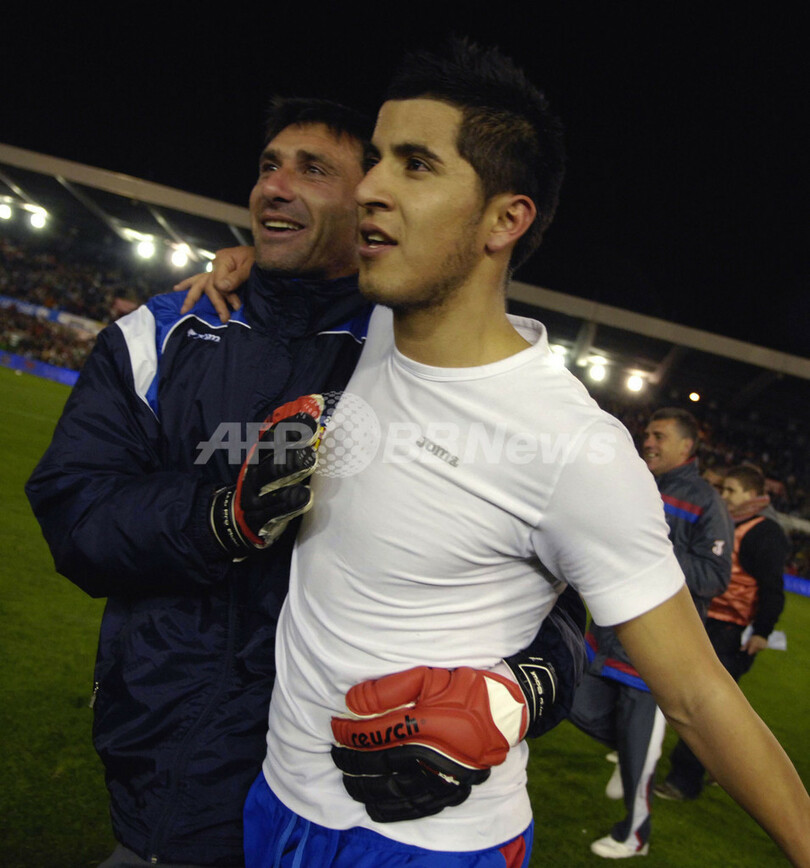 スポーツ サッカー ヘタフェ 2戦合計4-2で国王杯決勝へ 2008年3月20日 13:08 発信地:サンタンデール/スペイン [ ヨーロッパ スペイン ] このニュースをシェア ‹ › ❮ 2/7 ❯ チームメイトと共に決勝進出を喜ぶヘタフェのフアン・アルビン(%%Juan Angel Albin%%)。(c)AFP/A. ARRIZURIETA 画像作成中 ! 【3月20日 AFP】サッカー、スペイン国王杯(Copa del Rey 2007-08)・準決勝、ラシン・サンタンデール(Racing Santander)vsヘタフェ(Getafe CF)、第2戦。試合は1-1の引き分けに終わり、2戦合計スコアを4-2としたヘタフェが決勝進出を決めた。(c)AFP サッカー 一覧へ> メディア・報道関係・法人の方向け 写真・動画 購入のお問合せ>