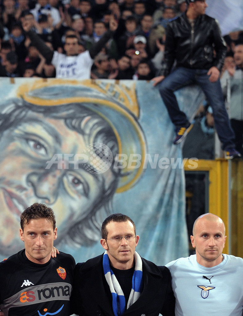 スポーツ サッカー ローマ ラツィオとのローマダービーで敗れる 2008年3月20日 11:42 発信地:ローマ/イタリア [ ヨーロッパ イタリア ] このニュースをシェア ‹ › ❮ 17/17 ❯ 試合前に2007年11月11日に警官の誤射により死亡したラツィオサポーターのガブリエレ・サンドリ(%%Gabriele Sandri%%)さんに敬意を表す(左から)ローマのフランチェスコ・トッティ(%%Francesco Totti%%)、ガブリエレ・サンドリさんの兄弟のクリスティアーノ・サンドリ(Cristiano Sandri)氏とラツィオのトマーゾ・ロッキ(%%Tommaso Rocchi%%)。(c)AFP/ALBERTO PIZZOLI 画像作成中 ! 【3月20日 AFP】サッカー、07-08イタリア・セリエA・第29節、ラツィオ(SS Lazio)vsASローマ(AS Roma)。試合はローマが2-3でラツィオに敗れ、ローマダービーで黒星を喫した。(c)AFP サッカー 一覧へ> メディア・報道関係・法人の方向け 写真・動画 購入のお問合せ>
