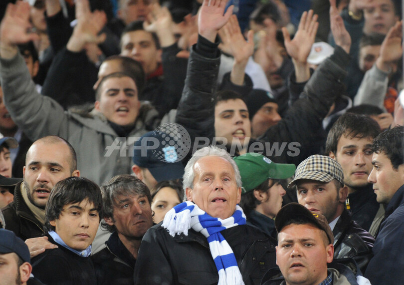 スポーツ サッカー ローマ ラツィオとのローマダービーで敗れる 2008年3月20日 11:42 発信地:ローマ/イタリア [ ヨーロッパ イタリア ] このニュースをシェア ‹ › ❮ 15/17 ❯ 試合観戦に訪れた、試合前に2007年11月11日に警官の誤射により死亡したラツィオサポーターのガブリエレ・サンドリ(%%Gabriele Sandri%%)さんの父ジョルジオ・サンドリ(%%Georgio Sandri%%、中央下)氏。(c)AFP/CHRISTOPHE SIMON 画像作成中 ! 【3月20日 AFP】サッカー、07-08イタリア・セリエA・第29節、ラツィオ(SS Lazio)vsASローマ(AS Roma)。試合はローマが2-3でラツィオに敗れ、ローマダービーで黒星を喫した。(c)AFP サッカー 一覧へ> メディア・報道関係・法人の方向け 写真・動画 購入のお問合せ>