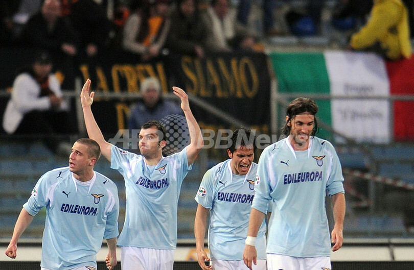 スポーツ サッカー ローマ ラツィオとのローマダービーで敗れる 2008年3月20日 11:42 発信地:ローマ/イタリア [ ヨーロッパ イタリア ] このニュースをシェア ‹ › ❮ 12/17 ❯ 前半44分に同点ゴールを決め歓喜するラツィオのゴラン・パンデフ(%%Goran Pandev%%、左2)。(c)AFP/ALBERTO PIZZOLI 画像作成中 ! 【3月20日 AFP】サッカー、07-08イタリア・セリエA・第29節、ラツィオ(SS Lazio)vsASローマ(AS Roma)。試合はローマが2-3でラツィオに敗れ、ローマダービーで黒星を喫した。(c)AFP サッカー 一覧へ> メディア・報道関係・法人の方向け 写真・動画 購入のお問合せ>