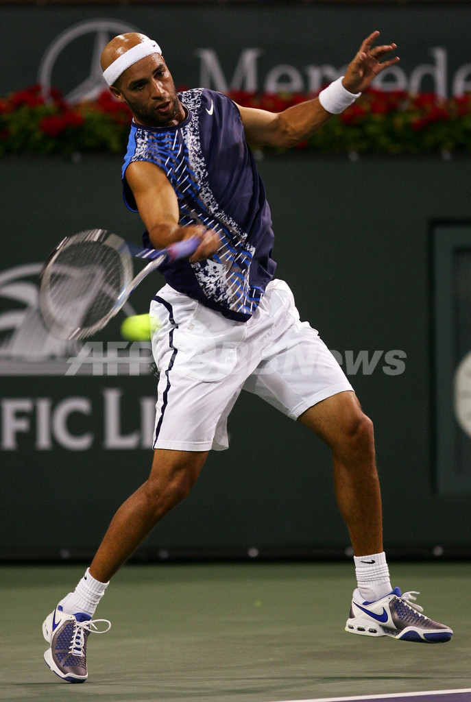 【3月20日 AFP】テニス、パシフィック・ライフ・オープン2008(Pacific Life Open 2008)男子シングルス4回戦。大会第9シードのジェームス・ブレーク(James Blake、米国)は、大会第8シードのリシャール・ガスケ(Richard Gasquet、フランス)と対戦。ブレークはセットカウント2-0(6-4、6-2)のストレートでガスケを降し、準々決勝進出を決めた。(c)AFP/Getty Images