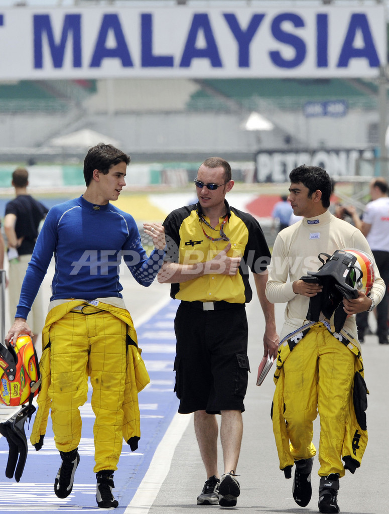スポーツ モータースポーツ 08F1第2戦マレーシアGP開幕を控え、各ドライバーが会場入り 2008年3月20日 17:00 発信地:セパン/マレーシア [ アジア・オセアニア マレーシア ] このニュースをシェア ‹ › ❮ 10/10 ❯ 08F1第2戦マレーシアGPの開幕を控え、会場となるセパン・サーキットに到着した、フォースインディア(Force India)のエイドリアン・スーティル(%%Adrian Sutil%%、左)、ジャンカルロ・フィジケラ(%%Giancarlo Fisichella%%、右)。(c)AFP/Jewel SAMAD 画像作成中 ! 【3月20日 AFP】現地21日にマレーシアのセパン(Sepang )で幕を開ける08F1第2戦マレーシアGP(Malaysian Grand Prix 2008)に向けて、マクラーレン・メルセデス(McLaren-Mercedes)のルイス・ハミルトン(Lewis Hamilton)を始めとした各チームのドライバーが、会場となるセパン・サーキット(Sepang Circuit)に到着した。(c)AFP モータースポーツ 一覧へ> メディア・報道関係・法人の方向け 写真・動画 購入のお問合せ>