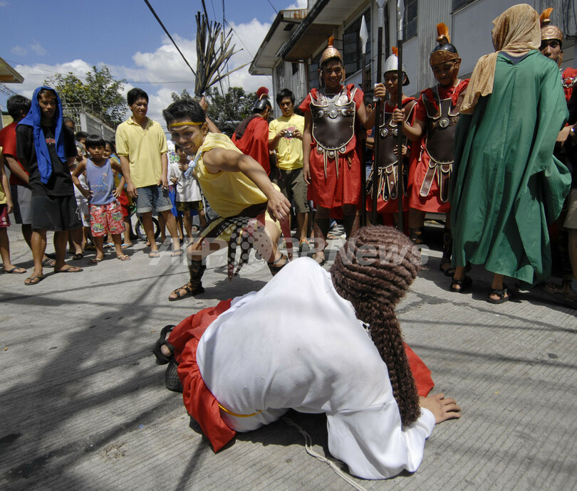 ニュース ライフ フィリピンのイースター行事でキリスト受難の再現 2008年3月24日 8:45 発信地:マンダルーヨン/フィリピン [ アジア・オセアニア フィリピン ] このニュースをシェア ‹ › ❮ 12/13 ❯ 2008年3月20日、フィリピンのMandaluyongで、イースター(Easter、復活祭)の行事の一環で、キリスト受難を再現するカトリック教徒。(c)AFP/LUIS LIWANAG 画像作成中 ! 【3月24日 AFP】キリストの復活を祝うイースター(Easter、復活祭)が世界中で祝われる中、フィリピンで20日、はりつけなどのキリスト受難の再現する伝統行事が行われた。同国保健当局は参加する人々に対し、破傷風のワクチン接種や、感染症防止のためツメの消毒などを行うよう呼び掛けた。(c)AFP ライフ 一覧へ> メディア・報道関係・法人の方向け 写真・動画 購入のお問合せ>
