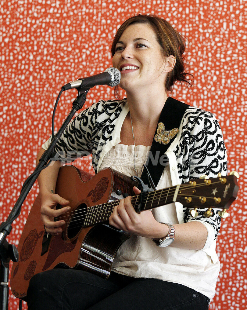 2008年3月20日、バーバンク(Burbank)でパフォーマンスを行うニューアルバム『ハロー(Hello...x)』を発売したばかりのシンガー・ソングライター、トリスタン・プリティマン(Tristan Prettyman)。(c)AFP/Getty Images/Kevin Winter