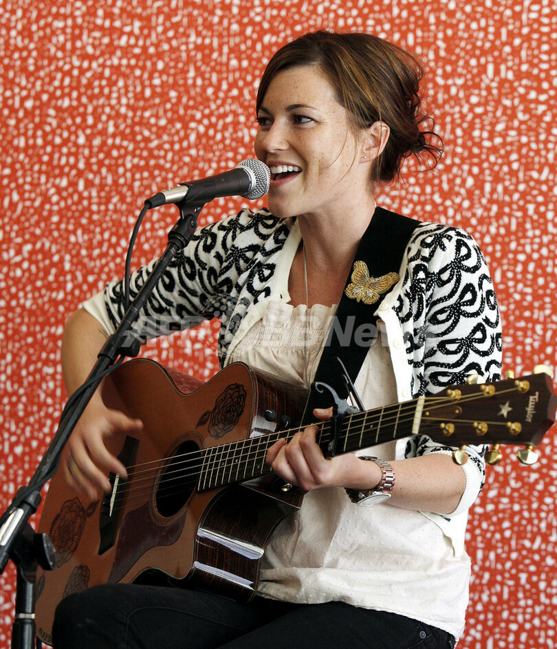 2008年3月20日、バーバンク(Burbank)でパフォーマンスを行うニューアルバム『ハロー(Hello...x)』を発売したばかりのシンガー・ソングライター、トリスタン・プリティマン(Tristan Prettyman)。(c)AFP/Getty Images/Kevin Winter