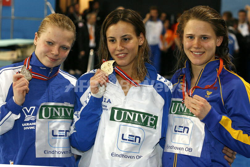 【3月22日 AFP】第29回LEN欧州水泳選手権(29th LEN European Swimming Championships)、女子飛び込み・10メートル高飛び込み決勝。イタリアのタニア・カニョット(Tania Cagnotto)は、合計355.35点を記録して優勝を果たした。また、2位には328.35点を記録したウクライナのIuliia Prokopchukが、3位には319.65点を記録したスウェーデンのElina Eggersが入った。(c)AFP