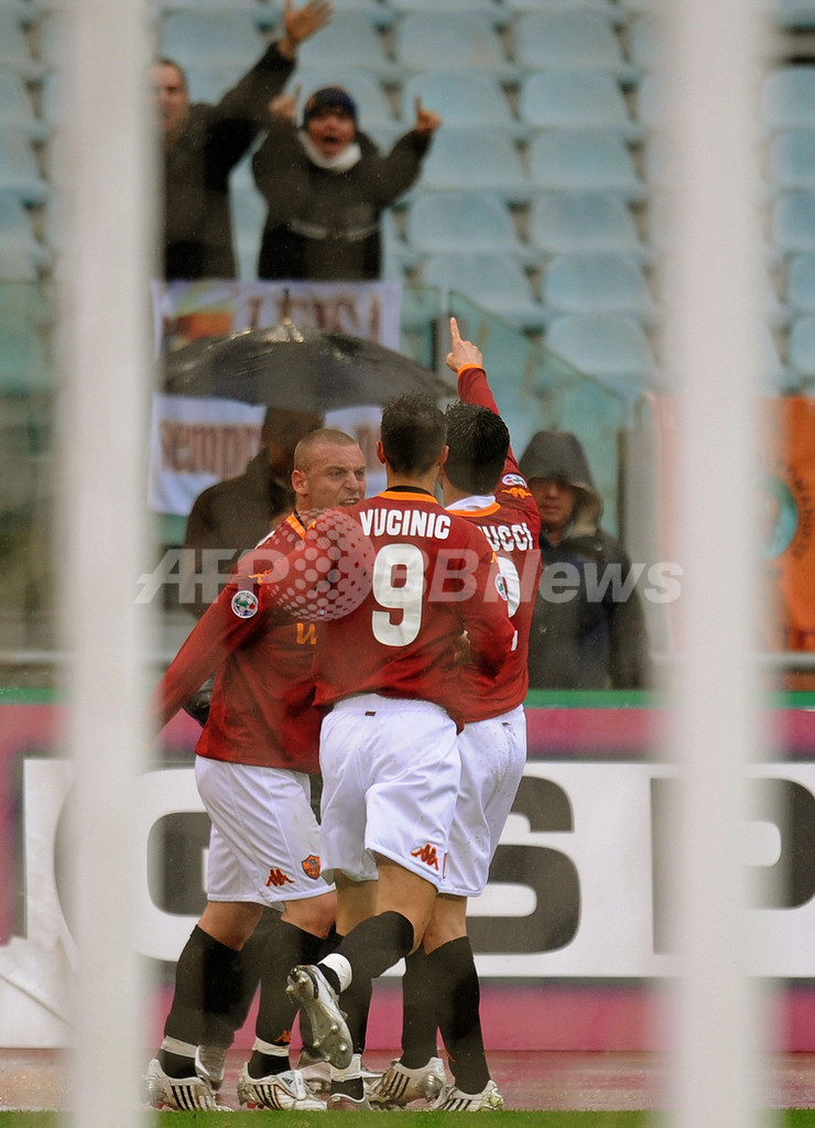 スポーツ サッカー ローマ ホームでエンポリに勝利 2008年3月23日 8:09 発信地:ローマ/イタリア [ ヨーロッパ イタリア ] このニュースをシェア ‹ › ❮ 3/8 ❯ 後半18分に勝ち越しゴールを決めチームメイトと共に歓喜するローマのクリスティアン・パヌッチ(%%Christian Panucci%%、右)。(c)AFP/CHRISTOPHE SIMON 画像作成中 ! 【3月23日 AFP】サッカー、07-08イタリア・セリエA・第30節、ASローマ(AS Roma)vsエンポリ(Empoli)。試合はローマが2-1でエンポリを降した。(c)AFP サッカー 一覧へ> メディア・報道関係・法人の方向け 写真・動画 購入のお問合せ>