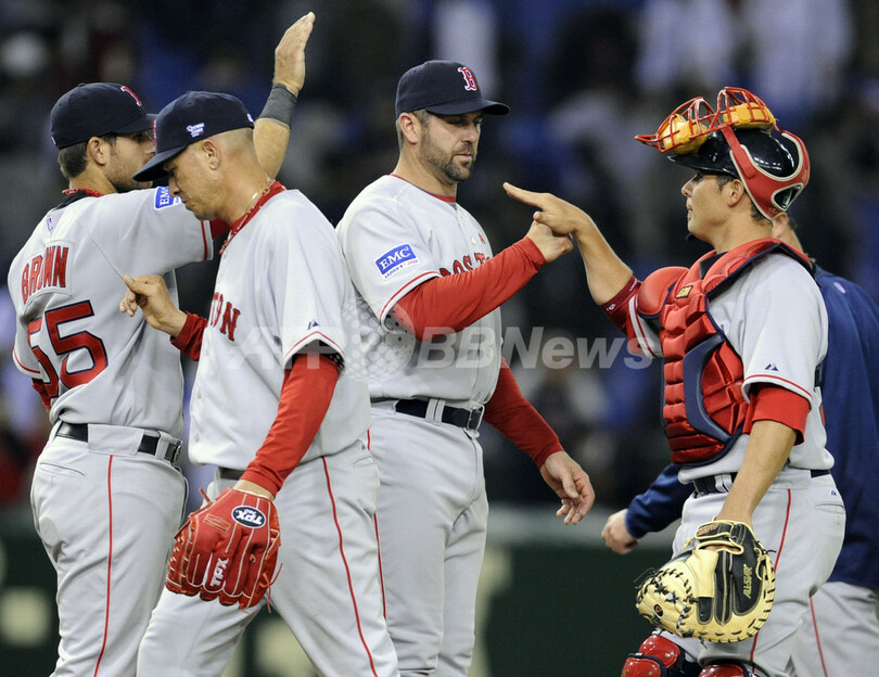 スポーツ 野球 レッドソックス 読売ジャイアンツに快勝 2008年3月24日 7:33 発信地:東京 [ アジア・オセアニア 東京 ] このニュースをシェア ‹ › ❮ 3/13 ❯ 試合を勝利で飾りタッチを交すレッドソックスのジェイソン・バリテック(%%Jason Varitek%%、右2)とケビン・キャッシュ(%%Kevin Cash%%)。(c)AFP/TOSHIFUMI KITAMURA 画像作成中 ! 【3月23日 AFP】(写真追加)3月25日から行われるオークランド・アスレチックス(Oakland Athletics)との08MLB日本開幕シリーズに先駆けて行われた読売ジャイアンツ(Yomiuri Giants)とのプレシーズンゲームに臨んだボストン・レッドソックス(Boston Red Sox)は、9-2で勝利を収めた。(c)AFP 野球 一覧へ> メディア・報道関係・法人の方向け 写真・動画 購入のお問合せ>
