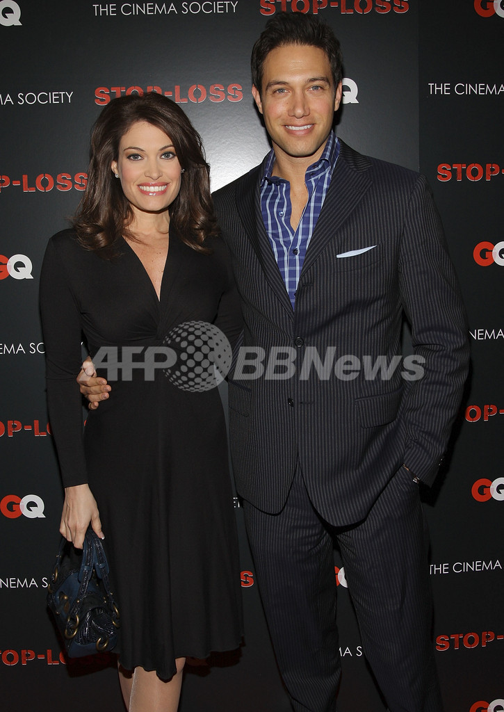 2008年3月20日、ニューヨーク(New York)で開催された映画『Stop-Loss』の上映会に登場したテレビタレントのキンバリー・ギルフォイル(Kimberly Guilfoyle、左)と夫のEric Villenciさん。(c)AFP/Getty Images/Stephen Lovekin