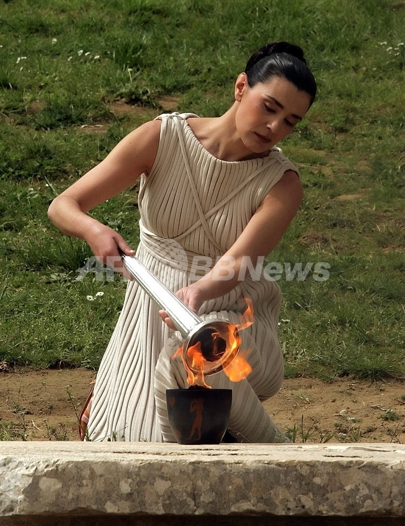 【3月24日 AFP】ギリシャ南西部、古代五輪発祥の地オリンピア(Olympia)で23日、北京五輪の聖火の採火式最終リハーサルが行われた。