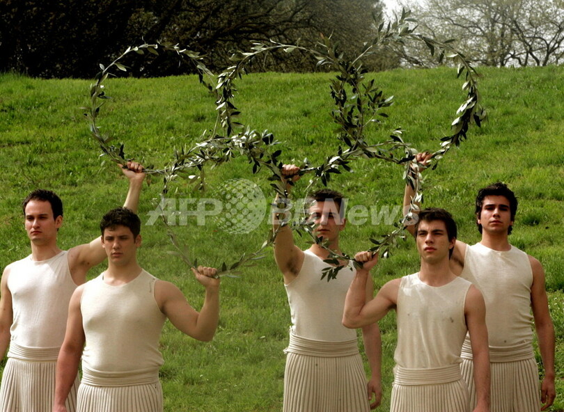 採火式は24日に行われるが、予報では強い雨が降るとみられ、開始時刻が当初の正午(1000 GMT)から午前11時(0900 GMT)に1時間早められている。(c)AFP/John Hadoulis